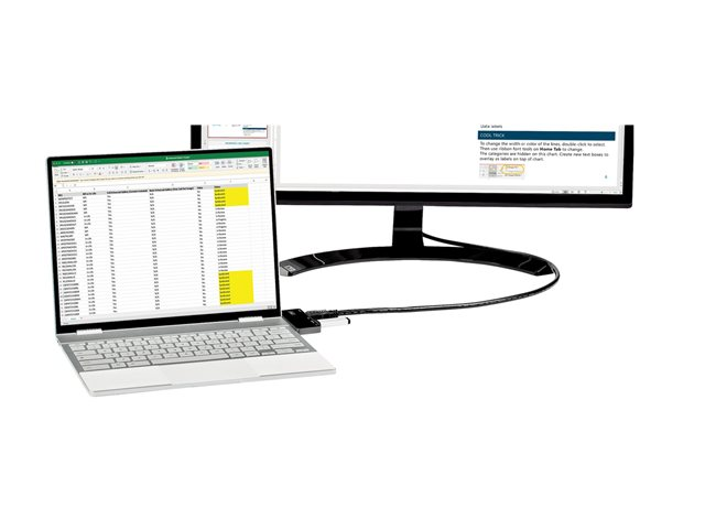 Adaptateur multiport USB-C compatible DP 1.4. Transforme vos iPad Pro, Surface Pro 7, Google Pixelbook et autres tablettes et ordinateurs portables USB-C en poste de travail, où que vous soyez. L'adaptateur multiport USB Type-C offre une sortie vidéo HDMI 4K 60 Hz (HDR10), un port USB Type-C (données/alimentation), deux ports USB 3.2 Gen 1 de type A (5 Gb/s) et un port audio TRRS 4 canaux pour casque et micro, le tout via une connexion unique au port USB-C ou Thunderbolt 3 de votre ordinateur portable. Offre une charge avancée via USB Power Delivery 3.0 100 W et élimine le besoin de disposer d'un câble relié avec une connexion USB-C directe/encastrée.