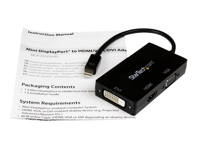1080p - Répartiteur Mini DP / Thunderbolt vers HDMI / VGA / DVI pour Votre Moniteur (MDP2VGDVHD) - Adaptateur vidéo - Mini DisplayPort mâle pour HD-15 (VGA), DVI-D, HDMI femelle - 27 cm - noir - actif, support 1920 x 1200 (WUXGA) - pour P/N: DKT31CMDPHPD