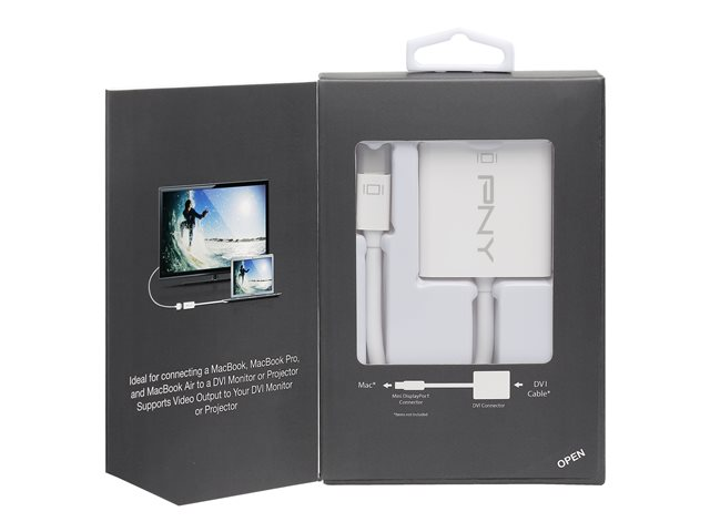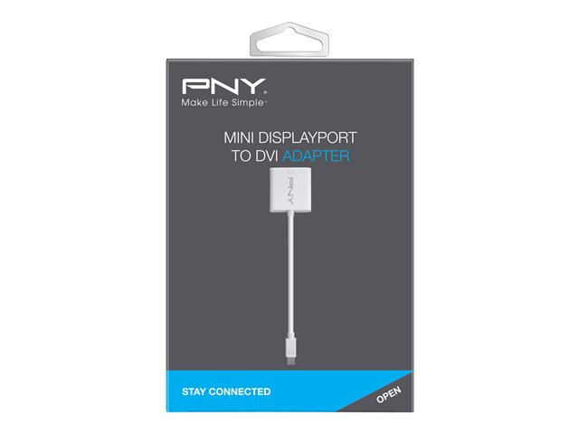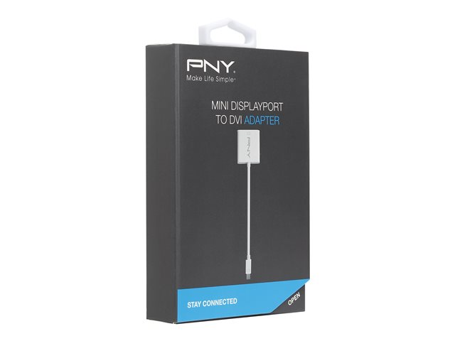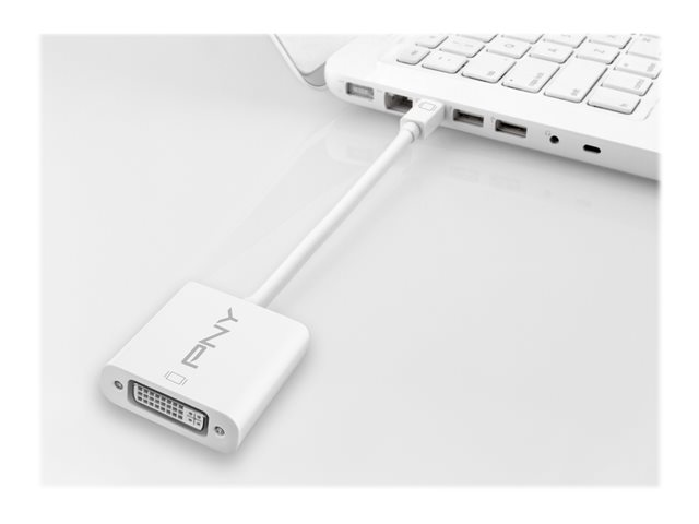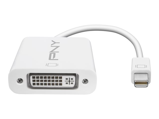 Description du produit PNY - adaptateur vidéo - Mini DisplayPort pour DVI-I Type Adaptateur vidéo Connecteur Mini DisplayPort - mâle Connecteur (deuxième extrémité) DVI combiné 29 broches - femelle Garantie du fabricant Garantie de 2 ans -