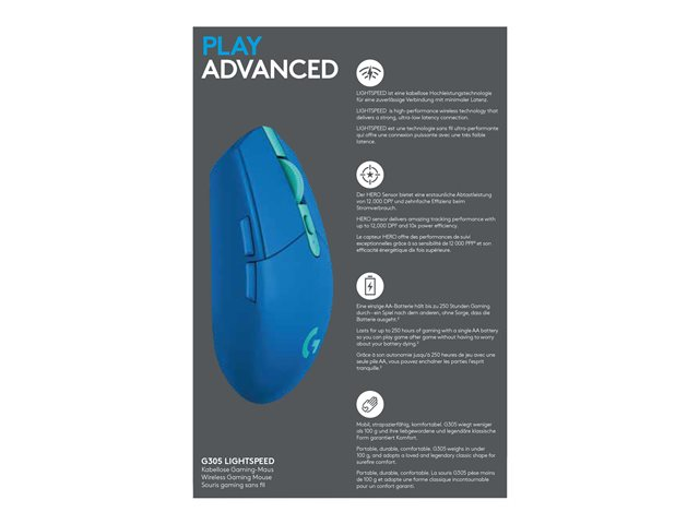 Dotée des innovations technologiques modernes, la souris gaming sans fil G305 LIGHTSPEED affiche des performances incomparables à un prix abordable.