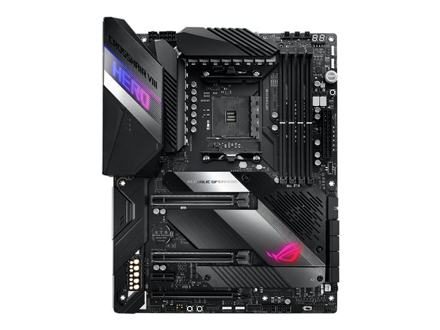 Supportant la 3e génération de processeurs AMD Ryzen, les ports LAN 2,5 Gb/s et PCIe 4.0 de chez Realtek, la Crosshair VIII Hero au design métallique et aux fonctionnalités ROG inédites est une carte-mère idéale pour votre système AMD Ryzen.
