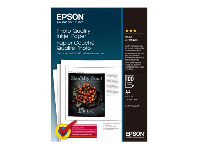 Mat - enduit - blanc pur - A4 (210 x 297 mm) - 102 g/m² - 100 feuille(s) papier - pour EcoTank ET-2810, 2815, 2825, 2826, 2850, 2851, 2856, 4800, 4850; SureColor SC-P700, P900