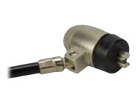 Antivol double à encoche pour les ordinateurs portables possédant une encoche de sécurité. Egalement utilisable avec les écrans plats ayant une encoche prévue à l'arrière. Il est constitué d'un câble de 1,80m sur lequel peut coulisser un autre câble de 0.4m afin de sécuriser deux matériels.