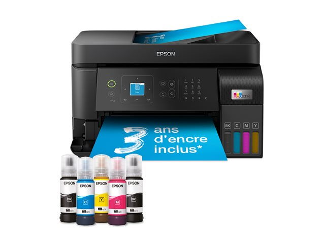 Économisez jusqu'à 90 % sur vos coûts d'impression avec les imprimantes et multifonctions EcoTank sans cartouche d'Epson. Fourni avec des bouteilles d'encre haute capacité, ses réservoirs d'encre intégrés sont faciles à remplir grâce aux bouteilles d'encre spécialement conçues. Sans aucune cartouche à remplacer et doté de fonctionnalités de connectivité flexibles ainsi que d'un fax, cette imprimante est idéale pour les personnes qui recherchent des impressions de haute qualité et un coût par page très faible.