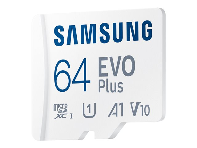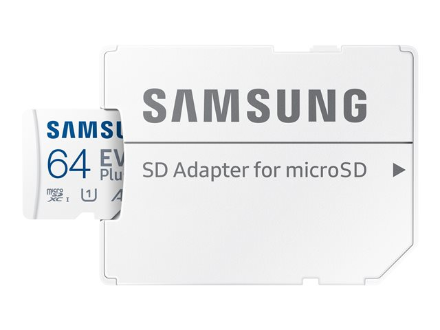Description du produit Samsung EVO Plus MB-MC64KA - carte mémoire flash - 64 Go - microSDXC UHS-I Type du Produit Carte mémoire flash Format Carte mémoire microSDXC UHS-I Capacité de stockage 64 Go Indice de vitesse A1 / Video Class V10 / UHS-I U1 / Class10 Couleur du boîtier Blanc Adaptateur mémoire fourni Adaptateur microSDXC vers SD Garantie du fabricant 10 ans de garantie -