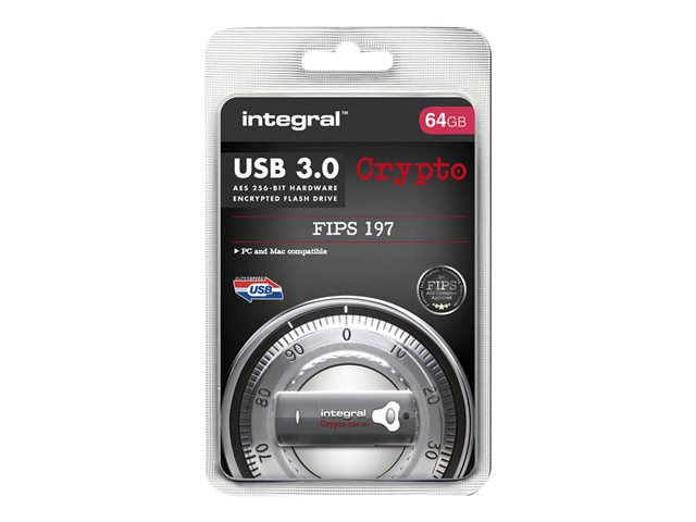 Description du produit Integral Crypto - clé USB - 64 Go Type du Produit Clé USB Type d'Interface USB 3.0 Capacité de stockage 64 Go Algorithme de chiffrement AES 256 bits, FIPS 197 Système d'exploitation requis Apple MacOS X, Microsoft Windows XP / Vista / 7 / 8 / 10 Garantie du fabricant Garantie de 2 ans -