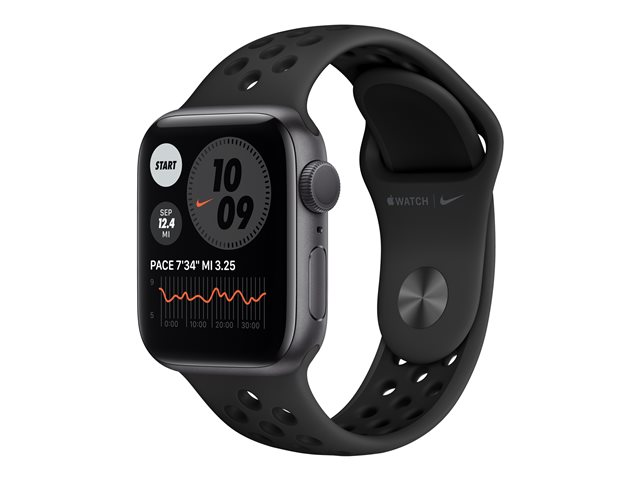 40 mm - espace gris en aluminium - montre intelligente avec bracelet sport Nike - fluoroélastomère - anthracite/noir - taille du bracelet : S/M/L - 32 Go - Wi-Fi, Bluetooth - 30.5 g