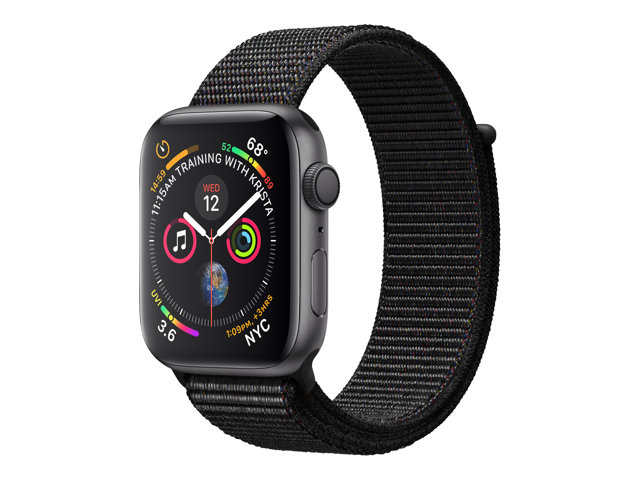 44 mm - espace gris en aluminium - montre intelligente avec boucle sport - nylon tissé - noir - taille de bande 145-220 mm - 16 Go - Wi-Fi, Bluetooth - 36.7 g