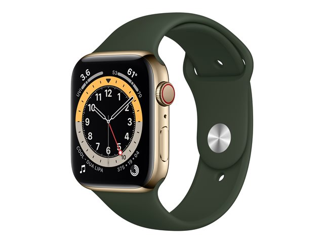 44 mm - acier inoxydable doré - montre intelligente avec bande sport - fluoroélastomère - vert chypre - taille du bracelet : S/M/L - 32 Go - Wi-Fi, Bluetooth - 4G - 47.1 g