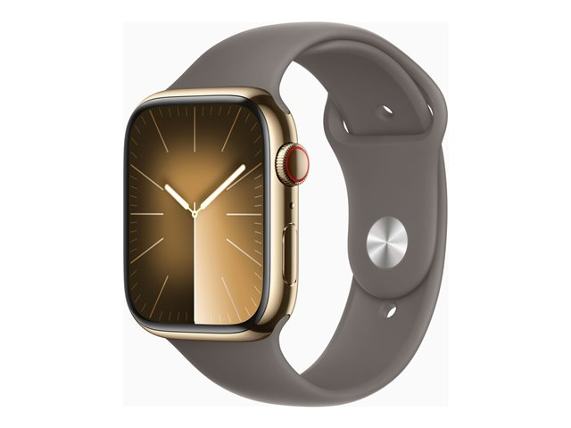 45 mm - acier inoxydable doré - montre intelligente avec bande sport - fluoroélastomère - argile - taille du bracelet : S/M - 64 Go - Wi-Fi, LTE, UWB, Bluetooth - 4G - 51.5 g