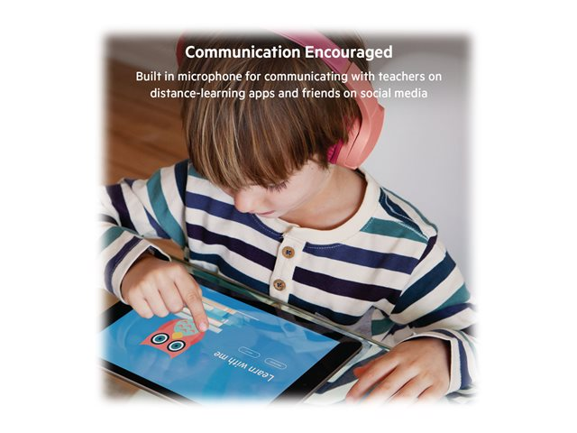 Protégez l'ouïe de vos enfants avec ce casque audio sans fil spécialement conçu pour eux. Quelle que soit leur activité (faire leurs devoirs en ligne ou regarder un contenu vidéo), vos enfants peuvent facilement jumeler le casque avec leur appareil. Les touches de contrôle sont intuitives et le volume ne dépasse pas les 85 dB. Grâce à sa grande autonomie de batterie, vos enfants pourront écouter leurs contenus audio préférés en continu, pendant des heures. Ce casque audio a été testé pour sa résistance à l'usure. Ce casque est résistant aux liquides et autres accidents éventuels. Il a été conçu pour fonctionner avec la plupart des appareils et applis d'apprentissage à distance.