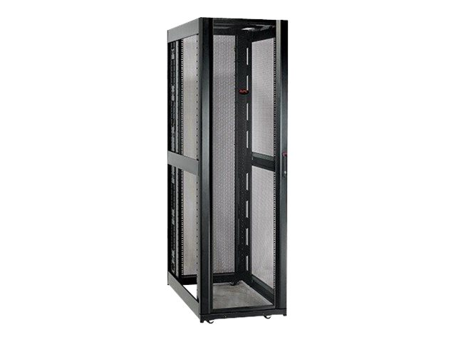 Armoires informatiques riches en fonctionnalités optimisées pour l'architecture en rangées InfraStruxure, la gestion des câbles, la distribution d'alimentation ainsi qu'une circulation d'air optimale.