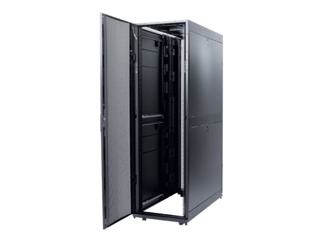 Armoires informatiques riches en fonctionnalités optimisées pour l'architecture en rangées InfraStruxure, la gestion des câbles, la distribution d'alimentation ainsi qu'une circulation d'air optimale.