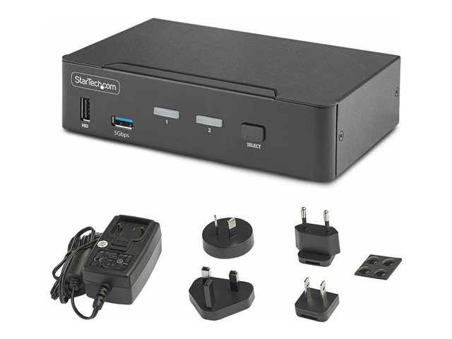 StarTech.com 2-Port DisplayPort KVM Switch, 8K 60Hz / 4K 144Hz, Single Display, DP 1.4, 2x USB 3.0 Ports, 4x USB 2.0 HID Ports, Push-Button & Hotkey Switching, TAA Compliant