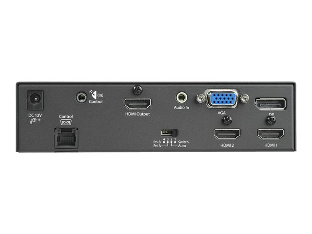 Ce commutateur A/V polyvalent a été conçu pour répondre aux besoins des utilisateurs de salles de conférence et de classe. Il comporte des entrées HDMI, VGA et DisplayPort pour prendre en charge toute une gamme d'appareils ainsi qu'un convertisseur intégré qui facilite la connexion à l'écran de la salle sans devoir connecter d'adaptateurs supplémentaires. De plus, la commutation automatique favorise la collaboration spontanée entre les étudiants et les collègues, car elle permet de facilement partager un vidéoprojecteur ou un autre type d'écran entre plusieurs sources.